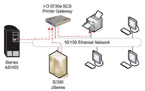I-O Corporation 5730e Print Server Gateway for iSeries AS/400 and zSeries S/390 - Supports 1 Printer